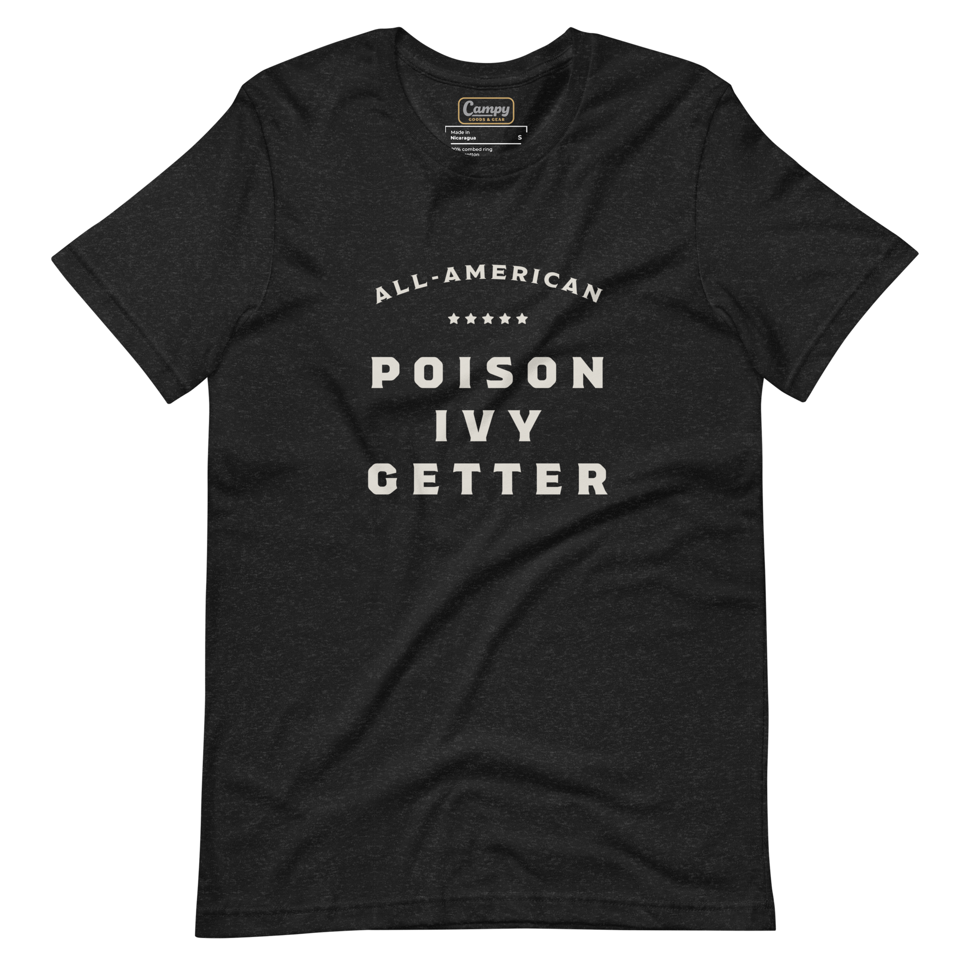 Celebrate the adventurous spirit with a touch of humor with the "All American Poison Ivy Getter" T-Shirt from Campy Goods & Gear. Perfect for those who can't seem to step outdoors without developing a rash, this shirt is a fun nod to the trials of nature enthusiasts. Made from a premium blend of ring-spun cotton and polyester, our shirts are soft, lightweight, and have just the right amount of stretch, ensuring comfort and a flattering fit for all. Whether you're hitting the trails or relaxing by the campfire, this tee is a must-have for every outdoor adventure.