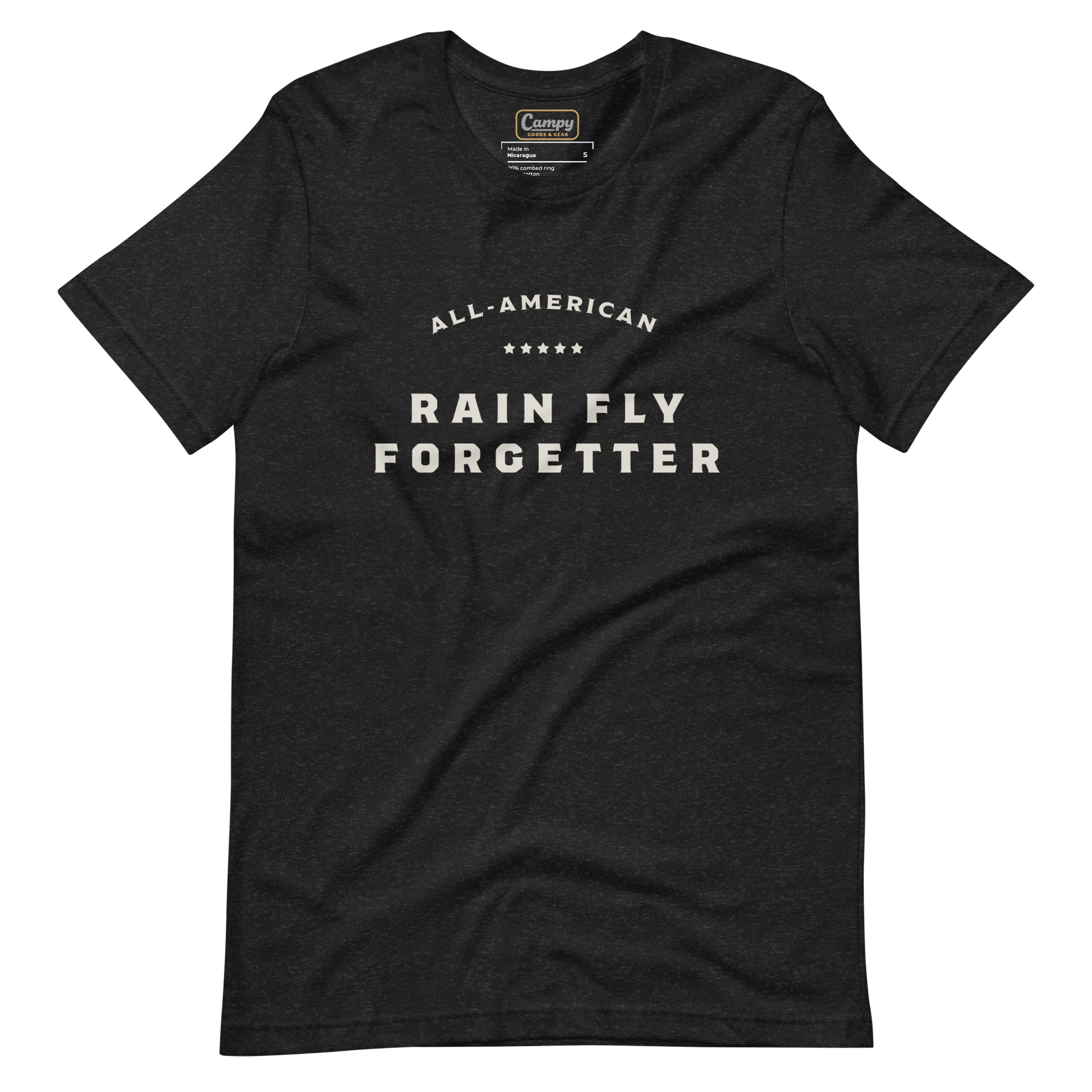 Embrace the unpredictable nature of outdoor adventures with the "Rain Fly Forgetter" T-Shirt from Campy Goods & Gear. Designed for those who always seem to forget their rain fly and end up sleeping in a pool of water, this shirt brings humor to the challenges of camping. Made from a premium blend of ring-spun cotton and polyester, our shirts are soft, lightweight, and have just the right amount of stretch, ensuring all-day comfort and a flattering fit for everyone. Perfect for camping enthusiasts, hikers, and anyone who loves the great outdoors, this tee is an essential addition to your camping wardrobe.