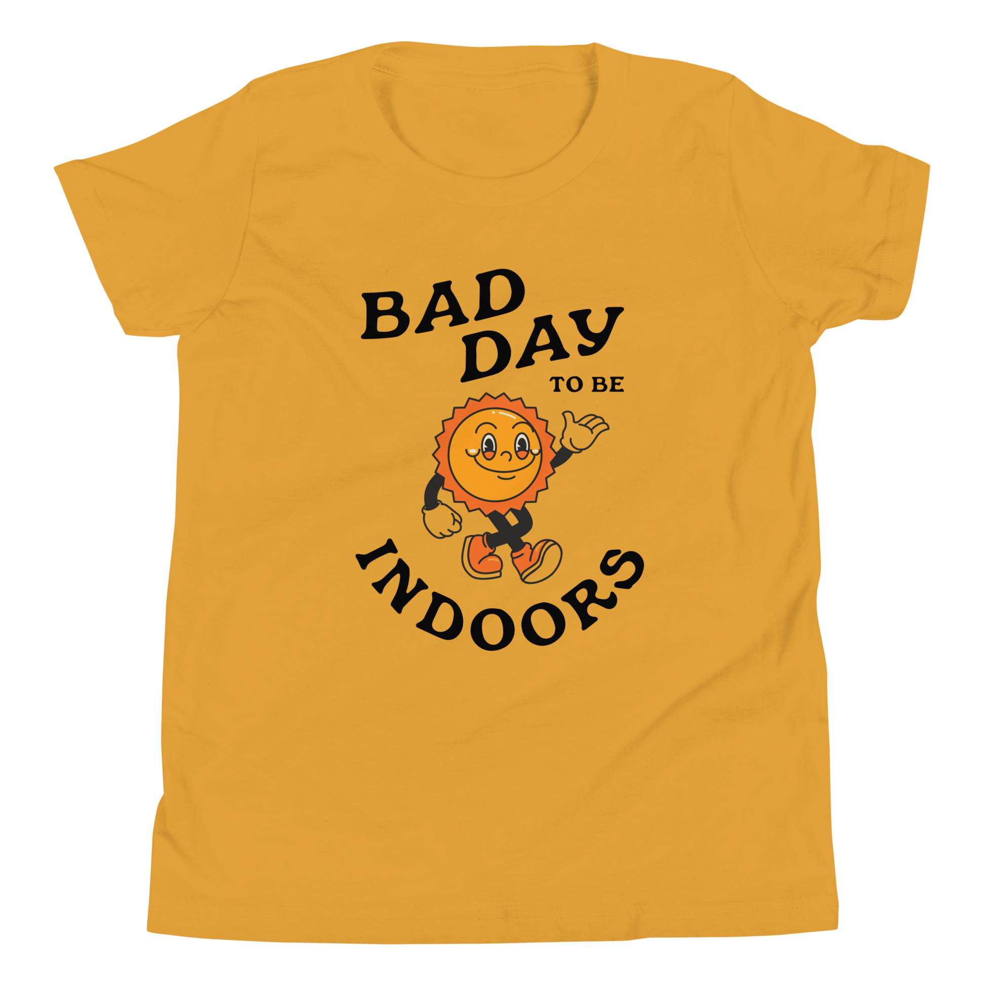 With its cheerful design and retro charm, this tee encourages kids to embrace the joy of being outside and making the most of every moment. Let them spread positivity wherever they go with our "Bad Day to be Indoors" tee, because when the sun is shining, every day is an adventure waiting to happen!