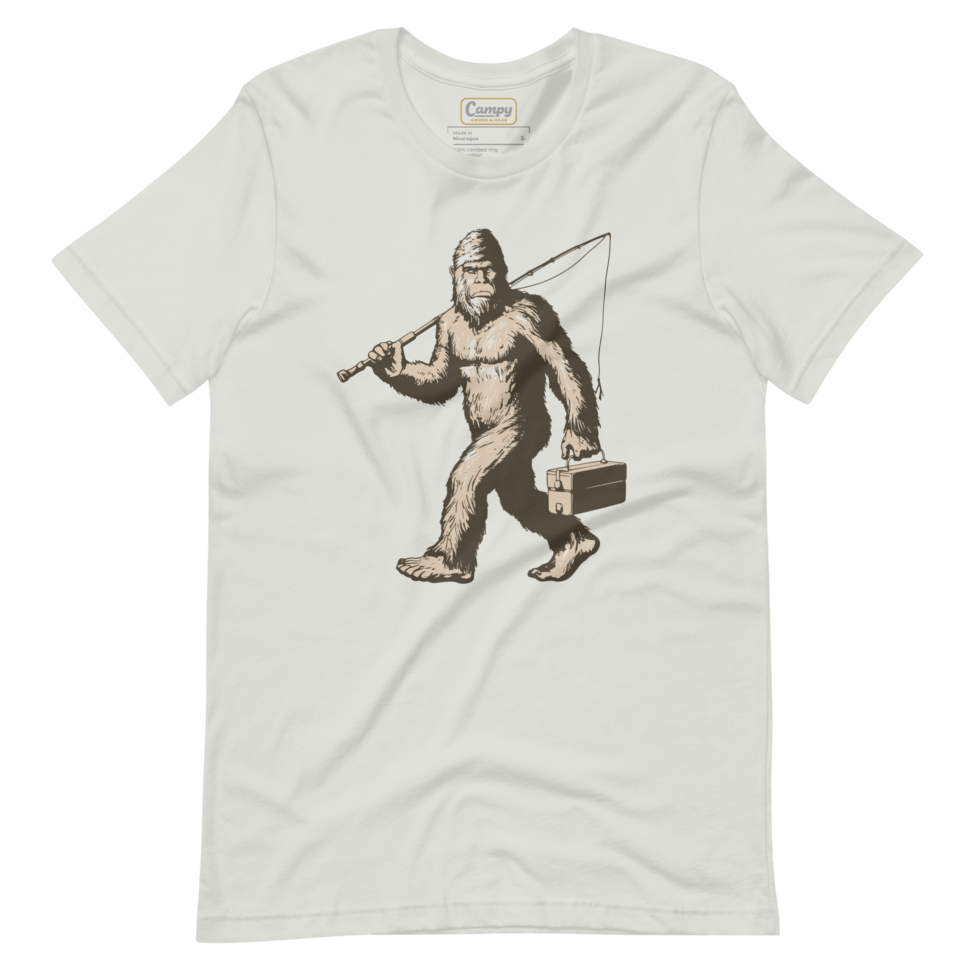 Introducing our "Bigfoot Fishing Adventure" t-shirt, perfect for outdoor enthusiasts and fans of the legendary Bigfoot. This tee features Bigfoot in his signature pose, but with a twist—he's carrying a fishing rod and tacklebox, ready for a day by the water. Made from soft, lightweight fabric with just the right amount of stretch, it's comfortable and flattering for everyone. Whether you're out on a fishing trip or simply love the great outdoors, this fun and unique t-shirt is a great way to show off your adventurous spirit.