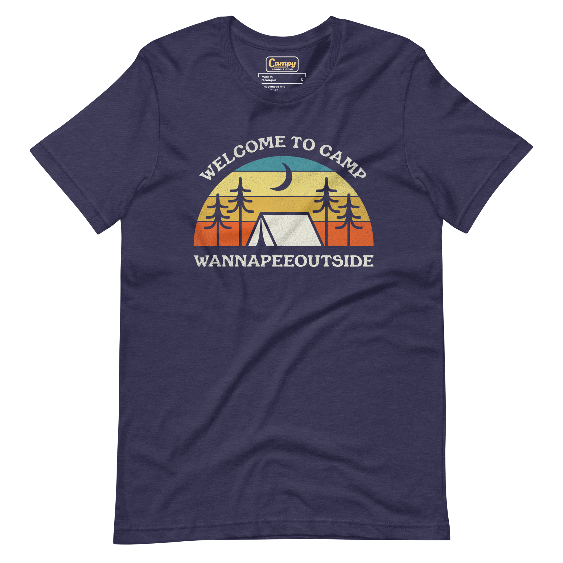 Featuring a playful design that pays homage to traditional camp vibes, this shirt is a conversation starter wherever you go. Whether you're gathering around the campfire or hitting the trails, let your adventurous spirit shine with our "Welcome to Camp Wannapeeoutside" tee. Get ready to make a statement and embrace your love for the wild, one laugh at a time.