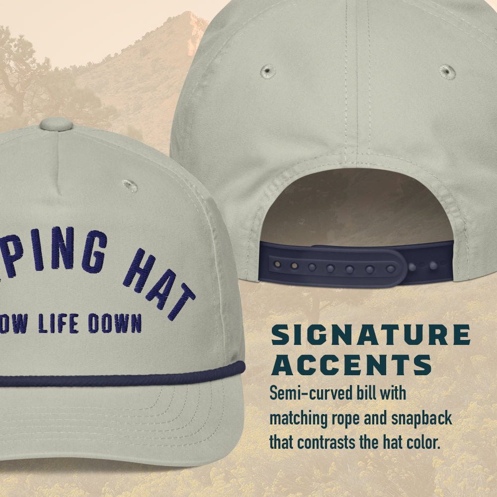 Add a touch of classic style to your fit with the Camping rope hat. Featuring a unstructured fit, rope detail, and adjustable snapback, it’s perfect for any outing.