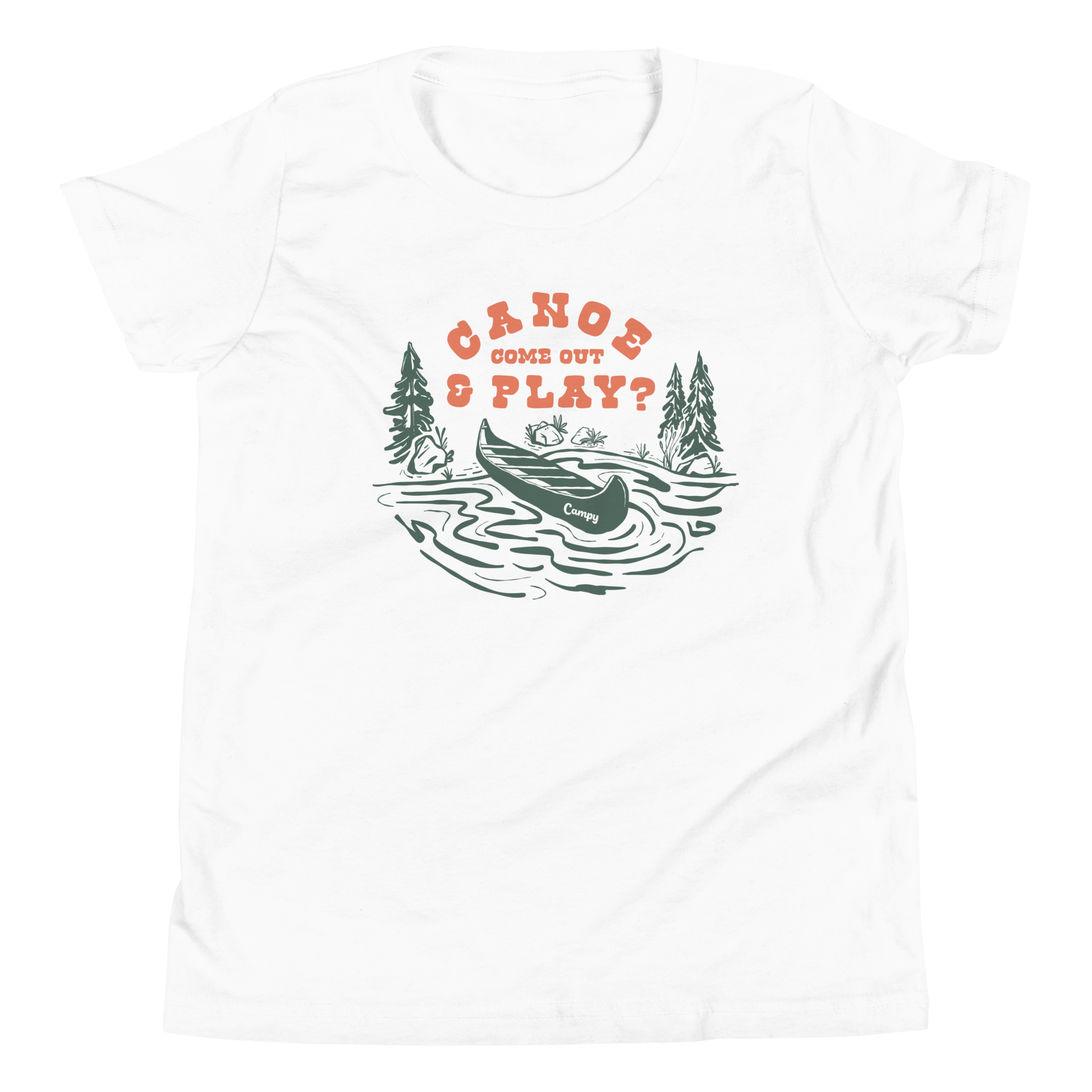 Crafted from soft and comfortable fabric, this shirt ensures that your child stays cozy while embarking on their camping adventures. Whether they're canoeing on a serene lake, exploring nature trails, or simply enjoying outdoor play, the "Canoe Come Out and Play" shirt is both stylish and practical.
