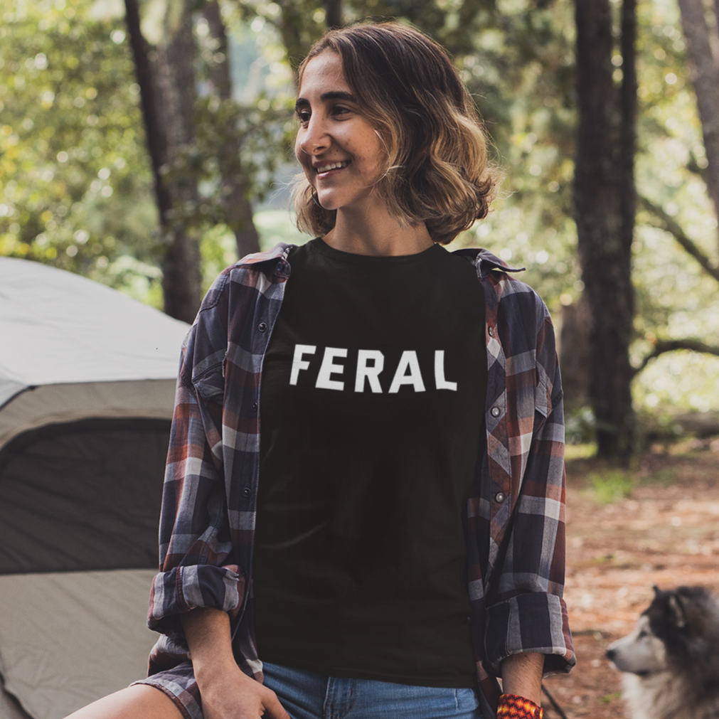 Unleash your inner wild child with our "FERAL" Tee, designed in that classic college font style straight from campus. Whether you're a weekend warrior, outdoor adventurer, or just proudly living on the edge of chaos, this shirt is your official badge of mischief.