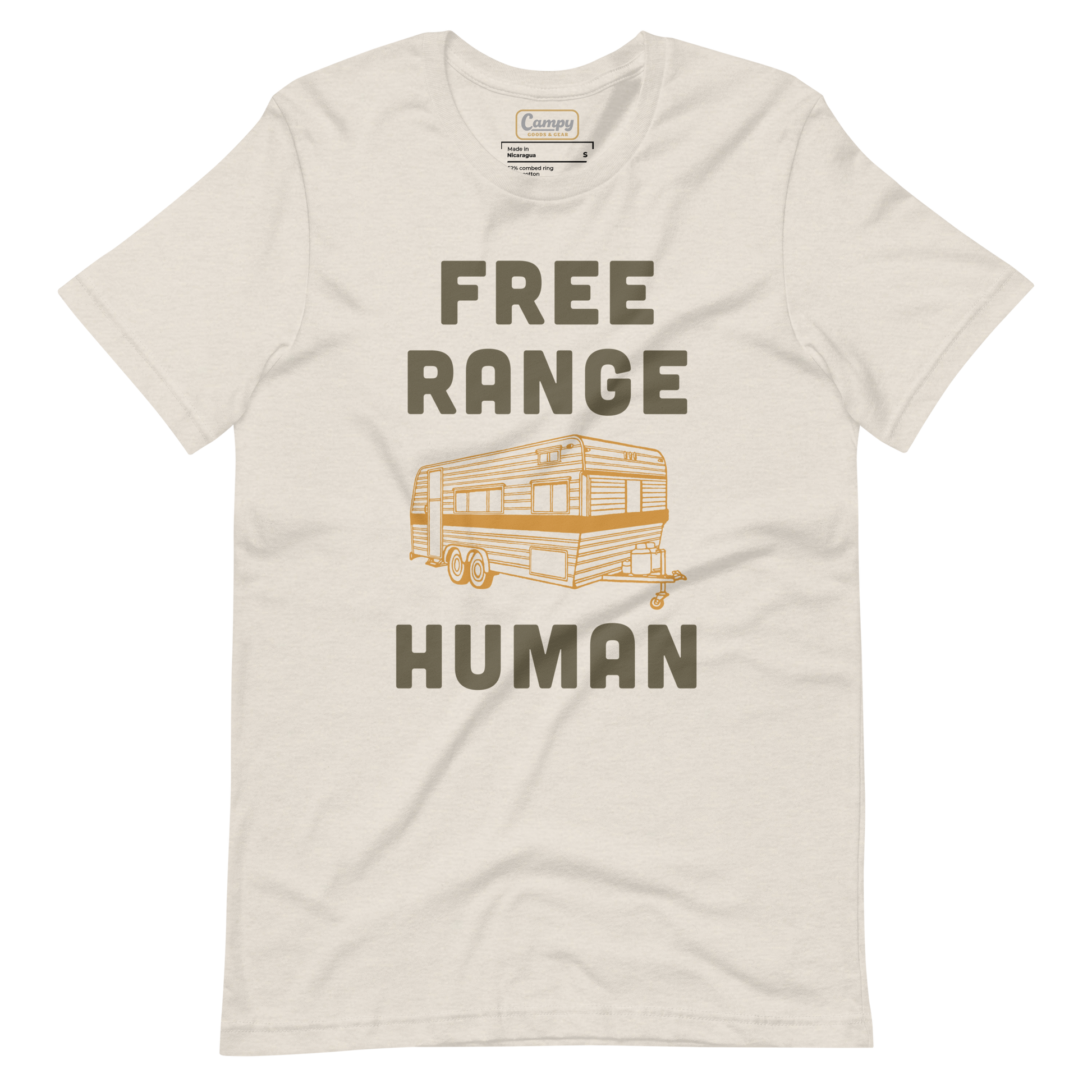 Embrace your inner wanderer with our *"Free Range Human"* T-shirt! Featuring a retro camper design, this tee is perfect for anyone who sees the open road as their true home. Whether you're parked at a scenic overlook or just dreaming of your next escape, this shirt celebrates your untamed spirit. Soft, comfortable, and full of quirky vibes, it’s ideal for adventurers who live life unhitched and unplugged.