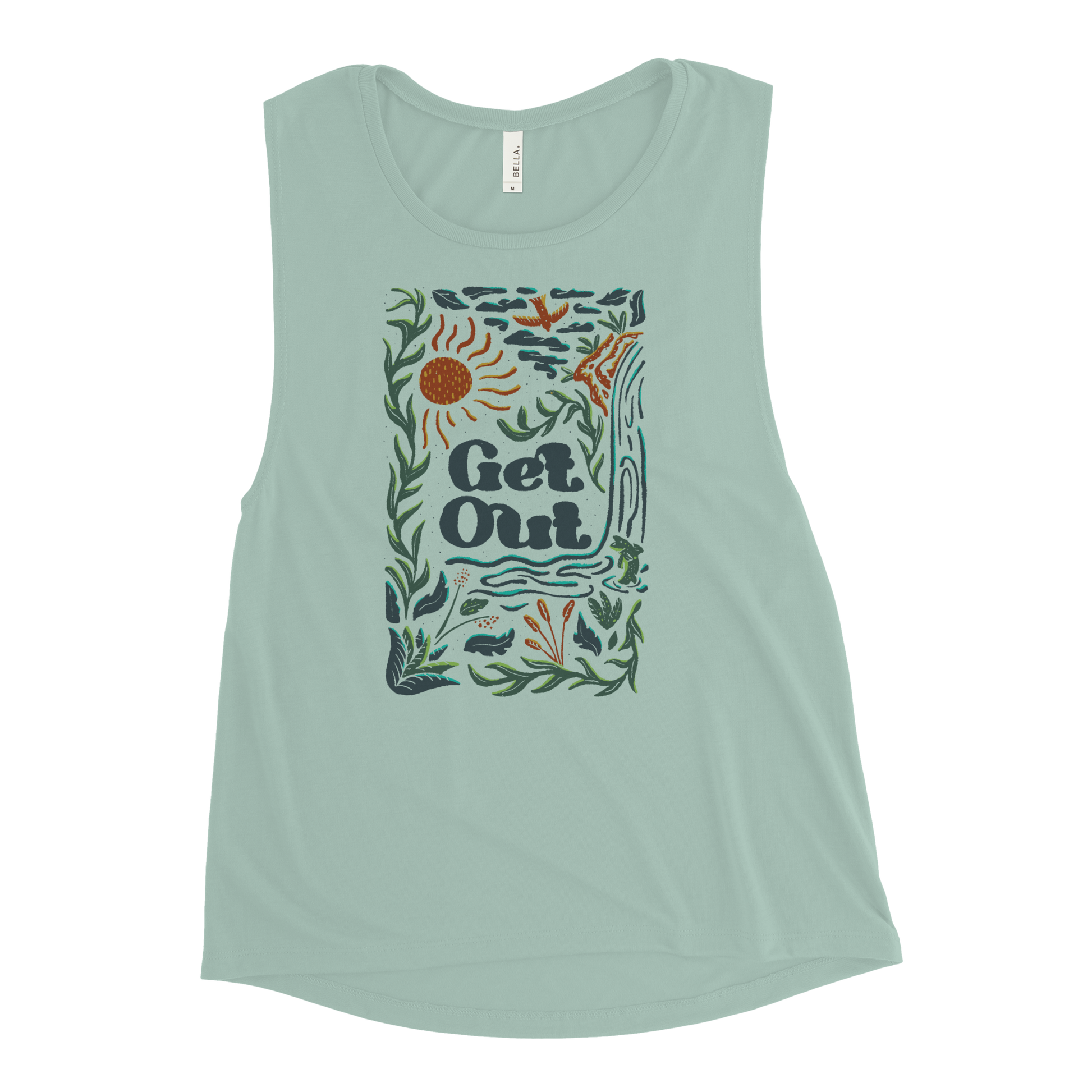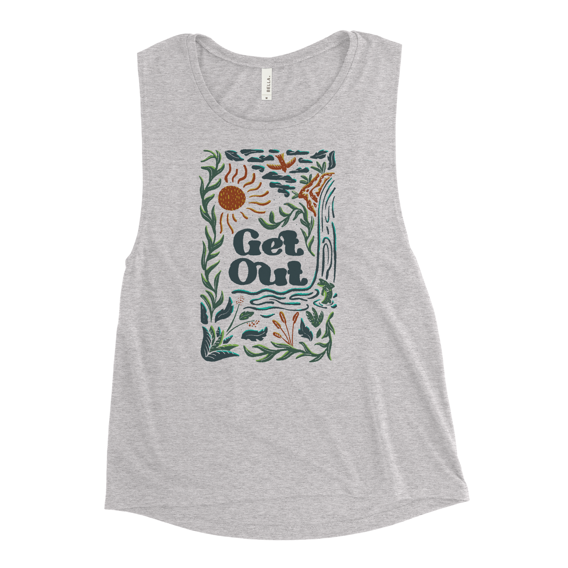 Featuring an outdoorsy theme with elements inspired by nature, this tank invites you to escape the hustle and bustle of everyday life and immerse yourself in the beauty of the natural world. The simple yet powerful phrase "Get Out" boldly displayed across the design serves as a reminder to embrace exploration and seek adventure in the great outdoors.
