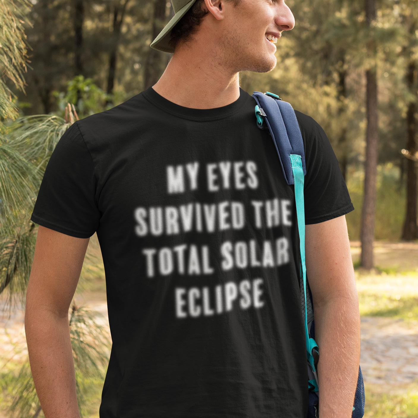Don't miss out on the opportunity to add a dash of fun to your wardrobe with our "My Eyes Survived the Total Solar Eclipse" T-shirt. Order yours today and let the world know that you're not afraid to laugh at life's cosmic wonders!