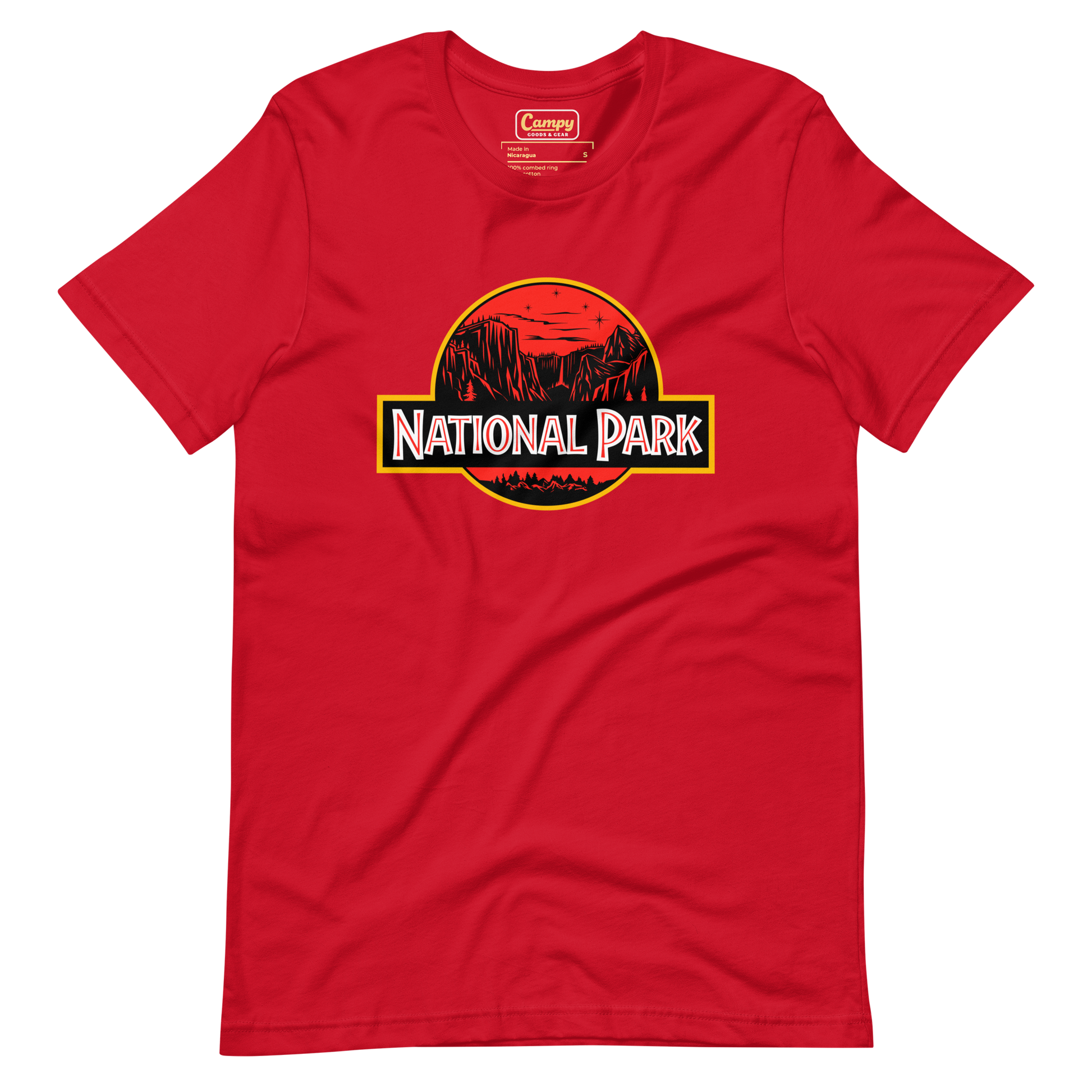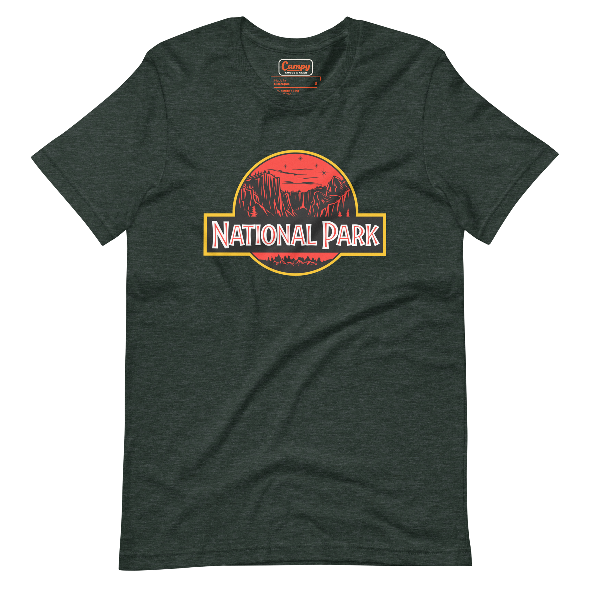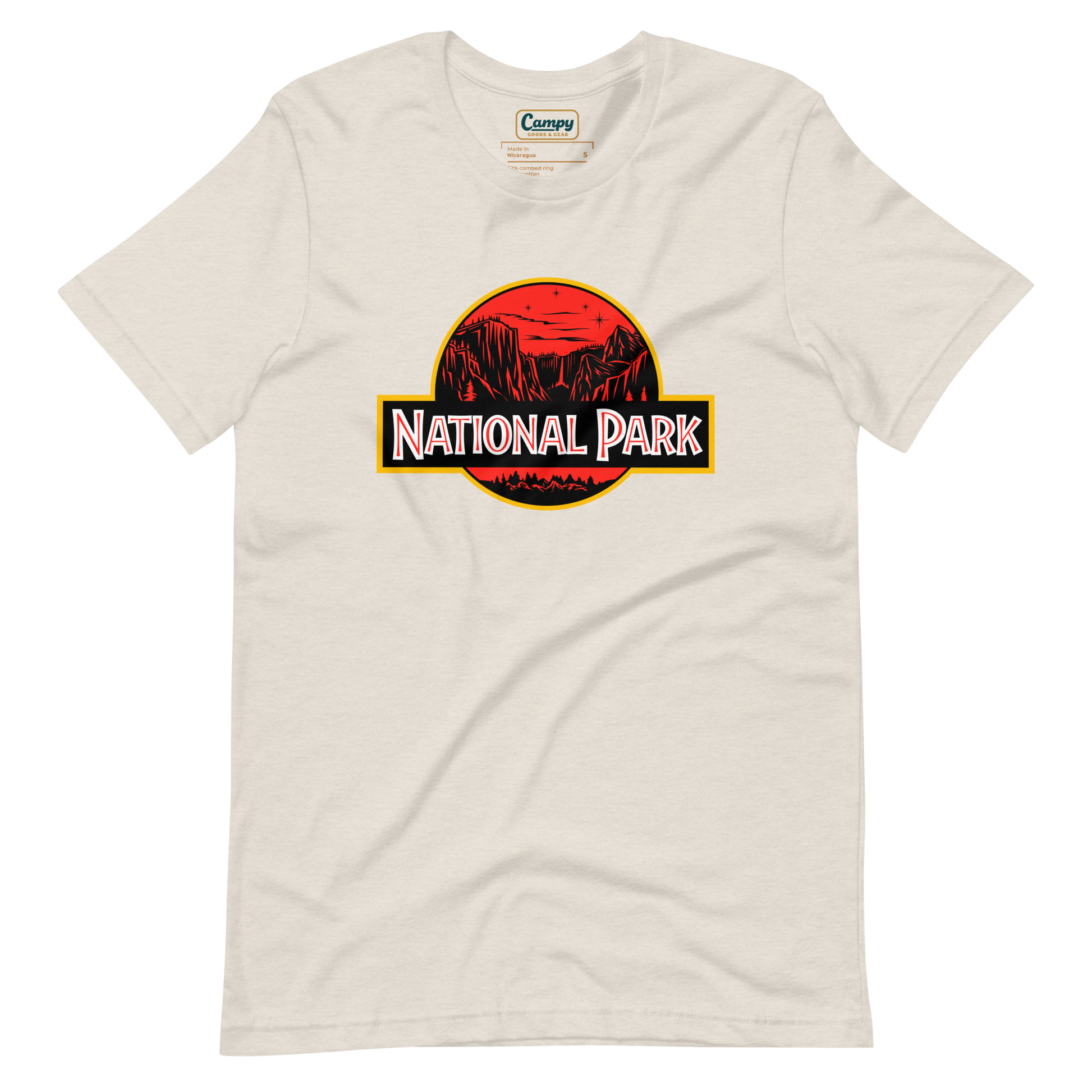 The National Park T-Shirt—a must-have for adventurers who prefer their wildlife sightings a little less... prehistoric! This clever twist on a classic design swaps out the roar of something terrifying for the call of the wild. Featuring a scenic National Park backdrop, it’s the perfect shirt for those who love nature—but without the "run-for-your-life" moments.