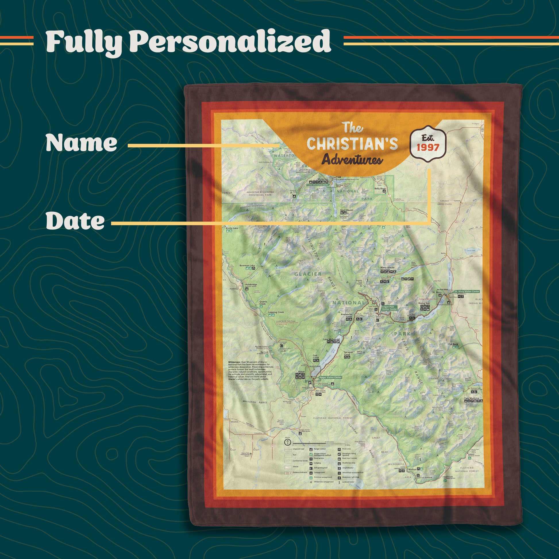 Personalized Glacier National Park Map Blanket