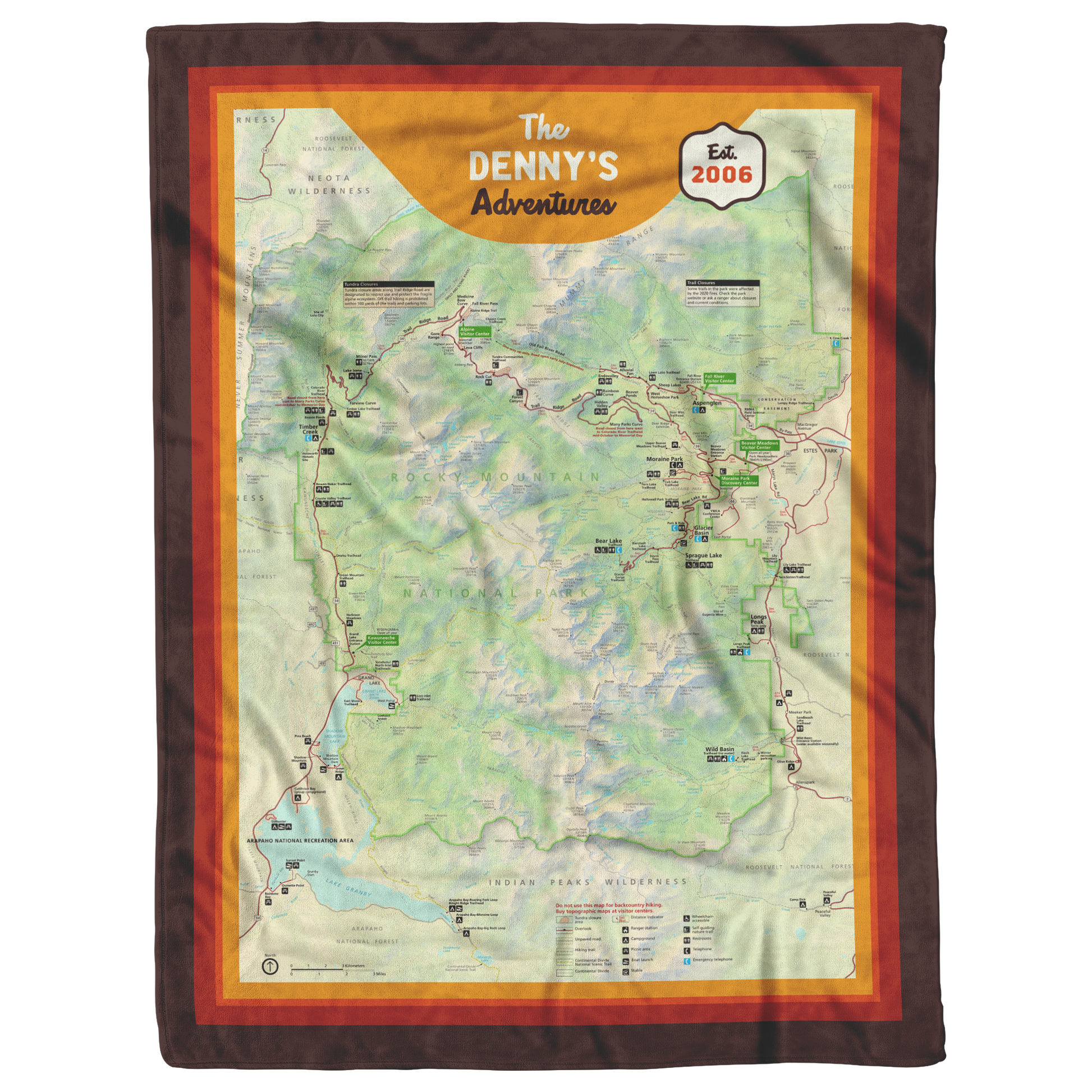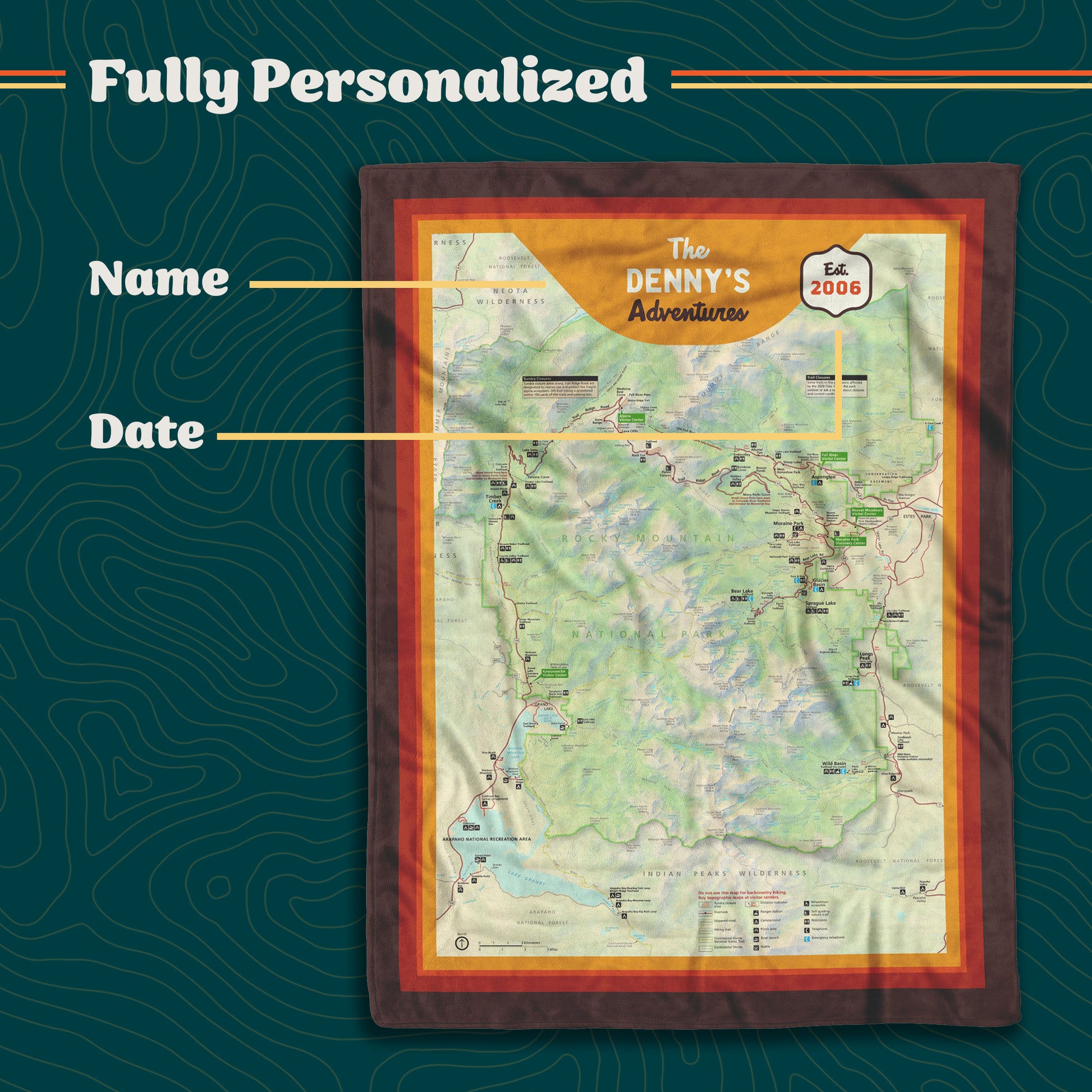 Personalized Rocky Mountain National Park Map Blanket