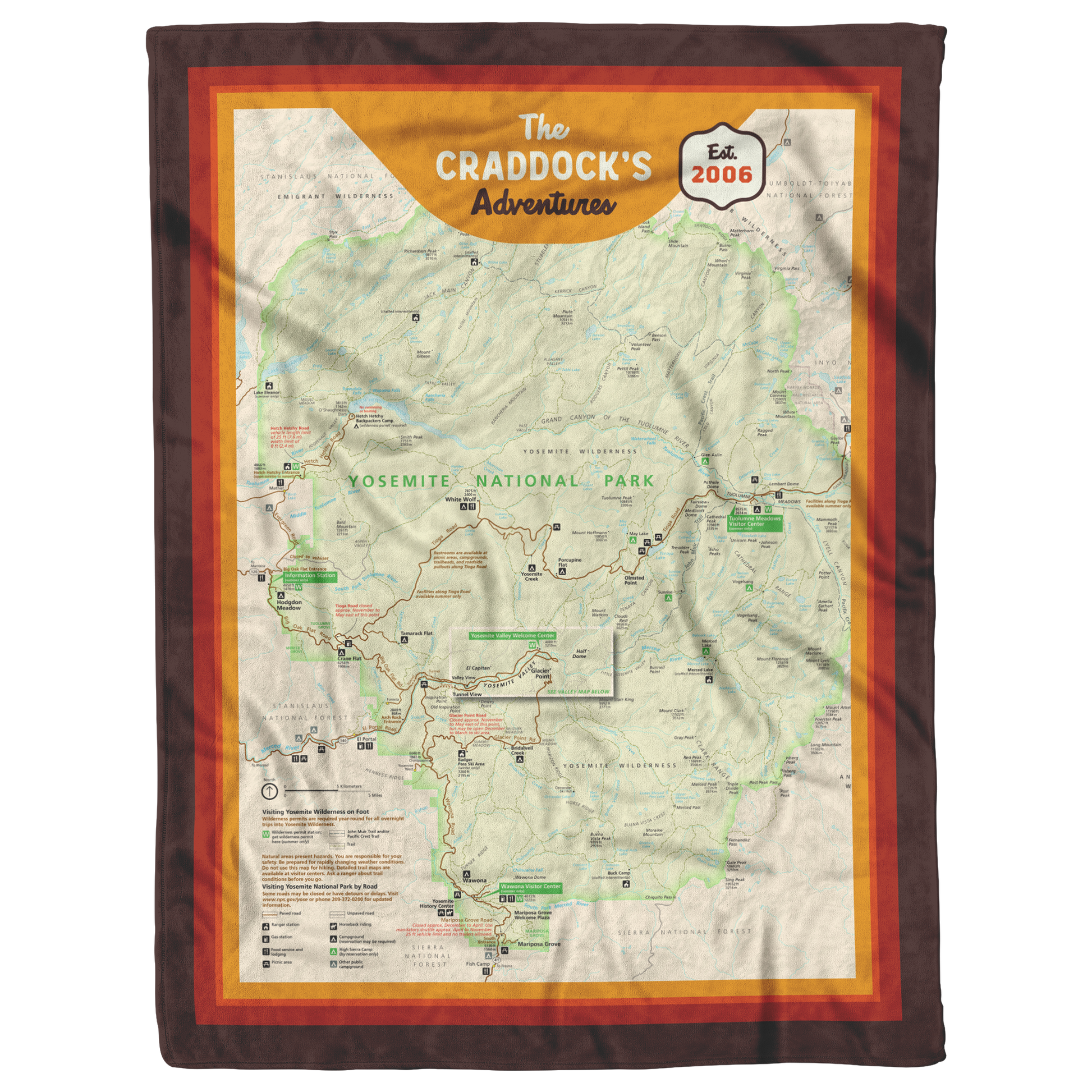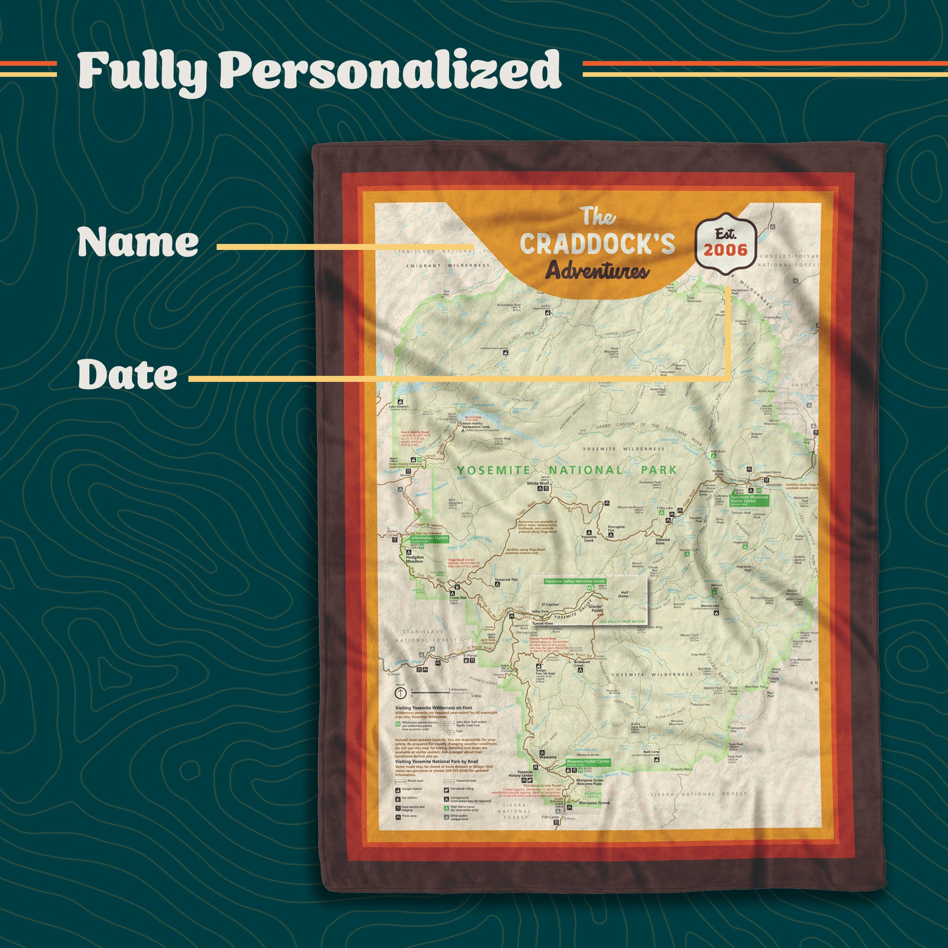 Wrap yourself in memories of Yosemite National Park with this cozy personalized blanket! Featuring a beautifully detailed map of the park, it’s the perfect way to celebrate your favorite adventures. Add your family’s name for a unique keepsake or gift it to your outdoorsy loved ones to inspire their next trip. Ideal for snuggling at home or keeping warm by the campfire!