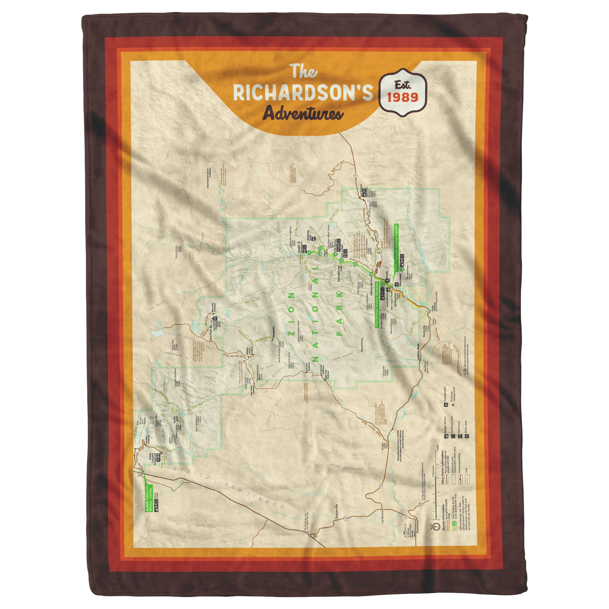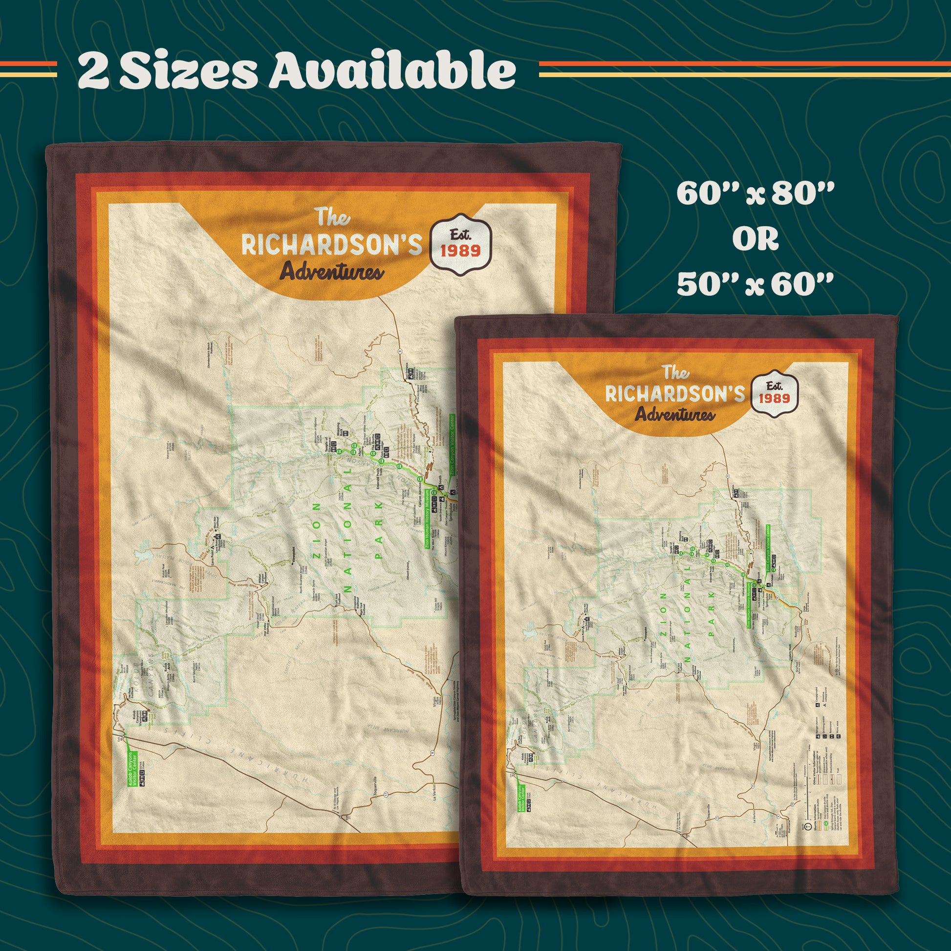 Wrap yourself in memories of Zion National Park with this cozy personalized blanket! Featuring a beautifully detailed map of the park, it’s the perfect way to celebrate your favorite adventures. Add your family’s name for a unique keepsake or gift it to your outdoorsy loved ones to inspire their next trip. Ideal for snuggling at home or keeping warm by the campfire!