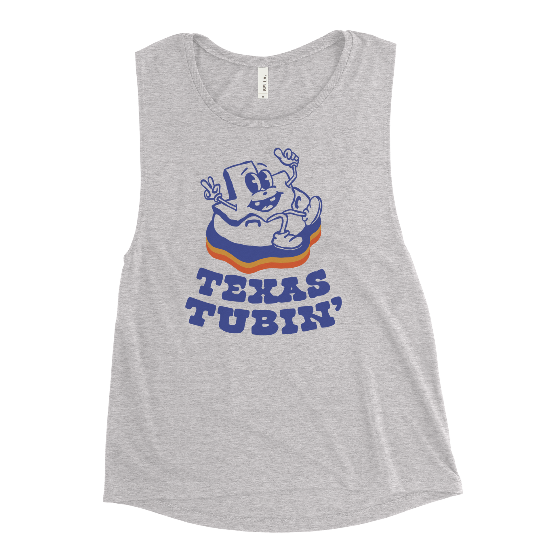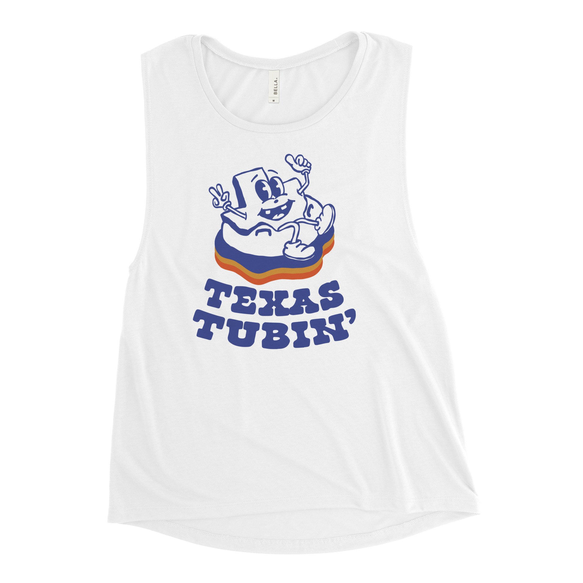 Featuring a vintage-inspired mascot of Texas leisurely tubing down the river, this tank captures the laid-back spirit of summer days in the Lone Star State. The phrase "Texas Tubin'" emblazoned across the design adds a playful touch, celebrating the cherished pastime enjoyed by Texans of all ages.