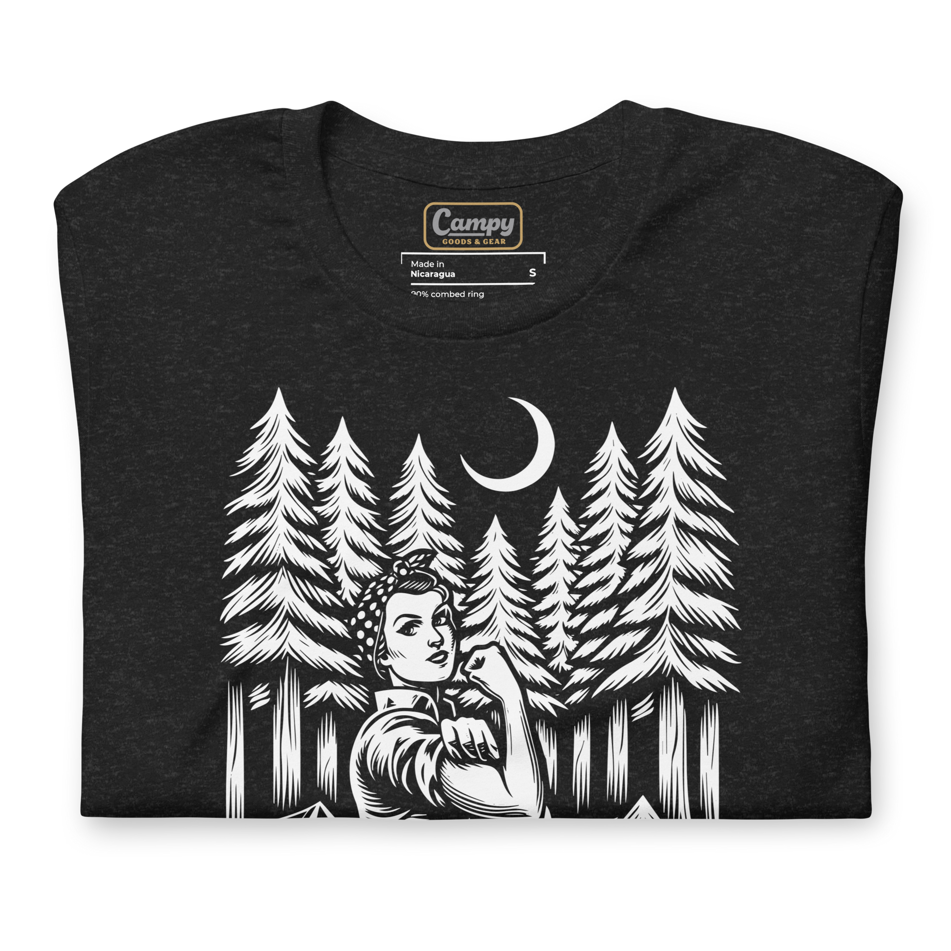 Made from comfortable, breathable fabric, this tee is perfect for layering around the campfire or hitting the trails. It's a great conversation starter for fellow lady campers who appreciate the empowering message and celebrate the joys of spending time in nature.